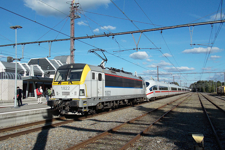 Loc SNCB 1822 + ICE 4651 (ICE 16 Frankfurt Hbf - Brussel-Zuid) im Bahnhof Welkenraedt. ICE 16 nach eine Panne zwischen Aachen Hbf und Welkenraedt.