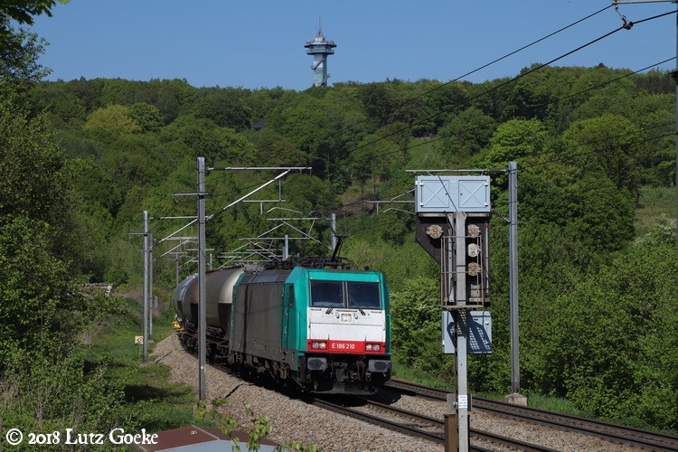 XRail 186 210 runs a rake of tankers into Belgium on a nice spring late afternoon.
