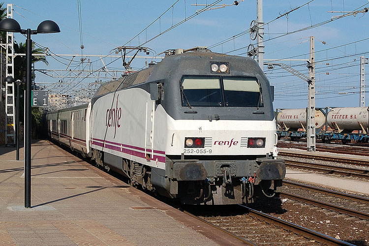 S 252055-9 is entering the station of Tarrogona with Talgo 1171 (Barcelona Sants 17:00 - Murcia del Carmen 23:43)