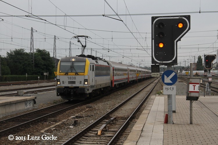 SNCB/NMBS 1838 arriving with an IC train at Brussel-Noord.